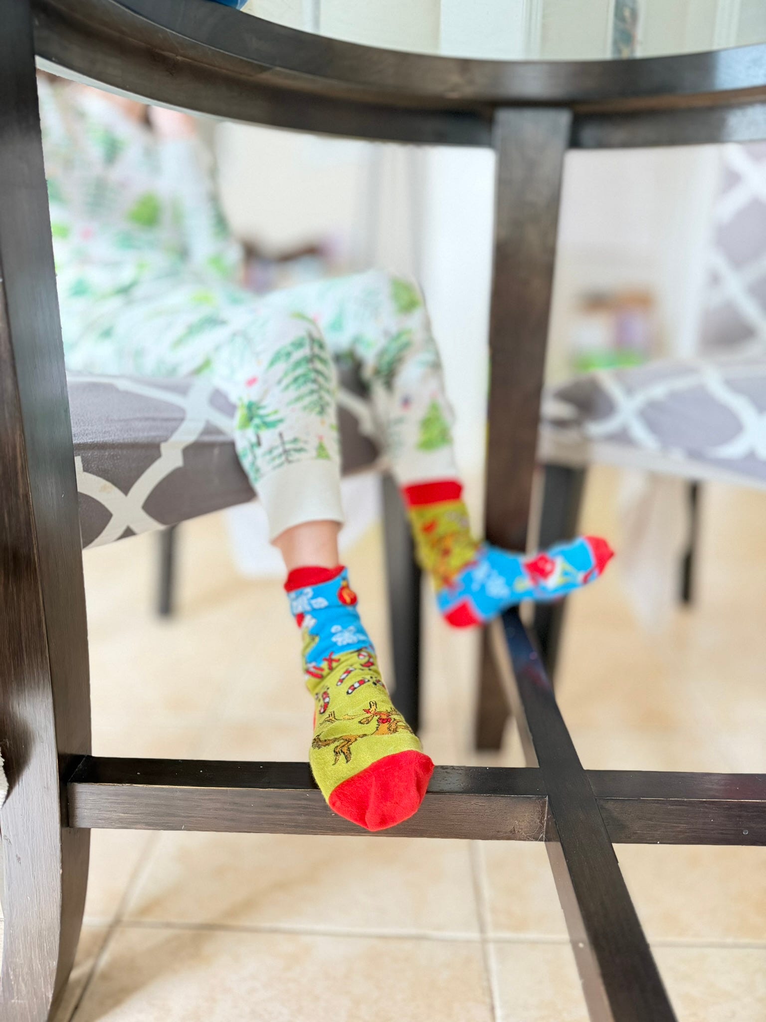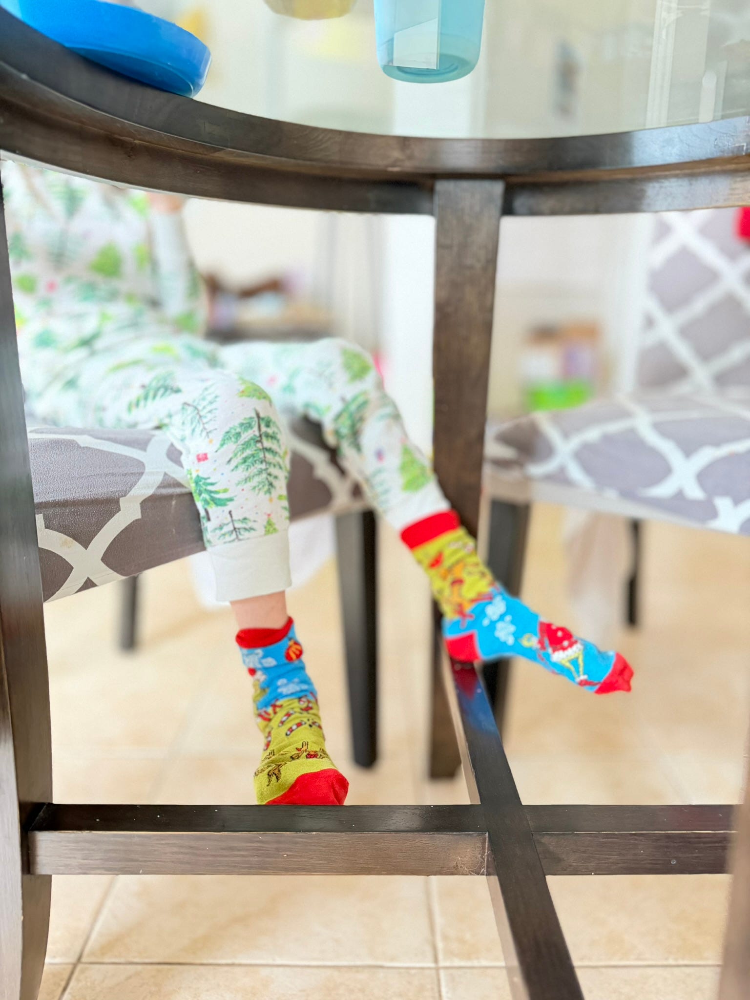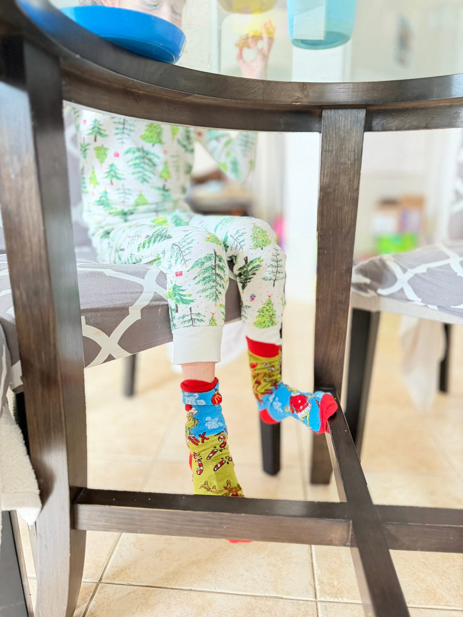 at the kitchen table during breakfast.
